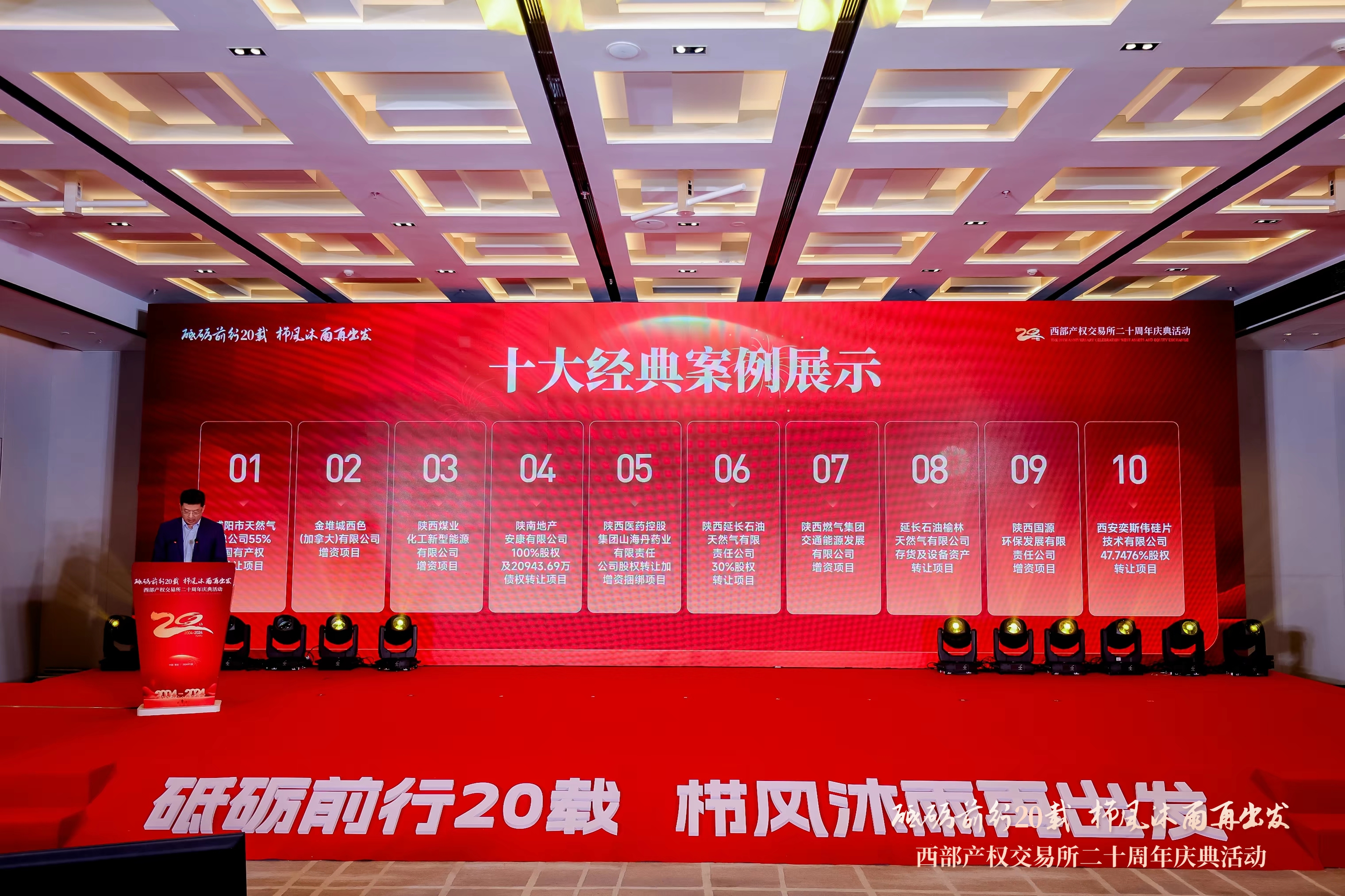 “十大经典案例”则是20年间,西部产权交易所在产权交易方面的探索和尝试的集中体现,他们分别是:01咸阳市天然气总公司55%国有产权转让项目;02金堆城西色(加拿大)有限公司增资项目;03陕西煤业化工新型能源有限公司增资项目;04陕南地产安康有限公司100%股权及20943.69万债权转让项目;05陕西医药控股集团山海丹药业有限责任公司股权转让加增资捆绑项目;06陕西延长石油天然气有限责任公司30%股权转让项目;07陕西燃气集团交通能源发展有限公司增资项目;08延长石油榆林天然气有限公司存货及设备资产转让项目;09陕西国源环保发展有限责任公司增资项目;10西安奕斯伟硅片技术有限公司47.7476%股权转让项目。