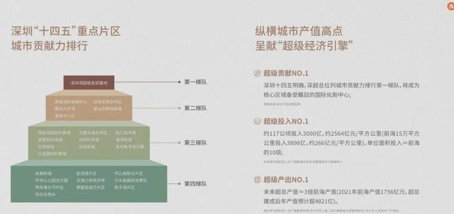 在2021年深圳十四五规划中,深圳将深圳湾超级总部基地明确列为城市贡献力的总部,“没有之一”。建成后,片区产值预计超4821亿≈3个前海(2021年数据)。超总壹号 售楼处电线。数据来源:深圳市规土委、《深圳湾超级总部基地研究》、深圳市人民政府门户网站。